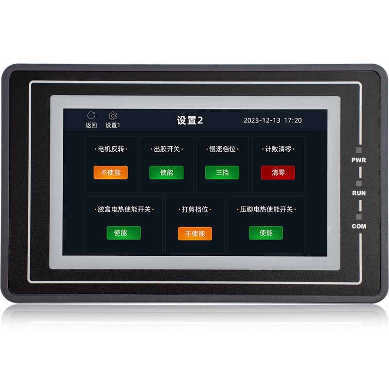 金璽HMI應(yīng)用在超聲波控制上,安裝在控制機(jī)箱上對(duì)超聲波進(jìn)行數(shù)據(jù)設(shè)定和監(jiān)控。